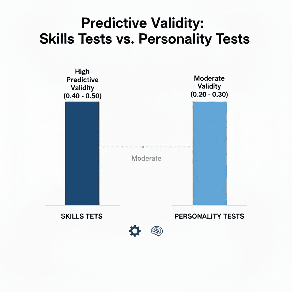 A graphic or chart comparing the predictive validity of skills tests vs. personality tests for job performance.